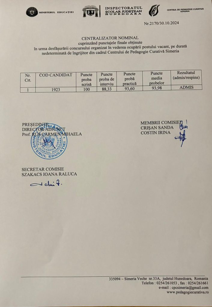 Anterior Articol Rezultate Concurs Instrucotr educație Următor Articol Concurs pentru ocuparea posturilor pe perioada determinata